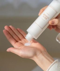 2. پس از پاکسازی پوست، مقدار مناسبی از تونر را روی پد پنبه‌ای یا کف دست بریزید.